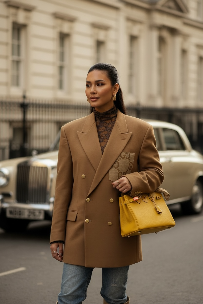 Double breasted colbert with pocket, select the fabric