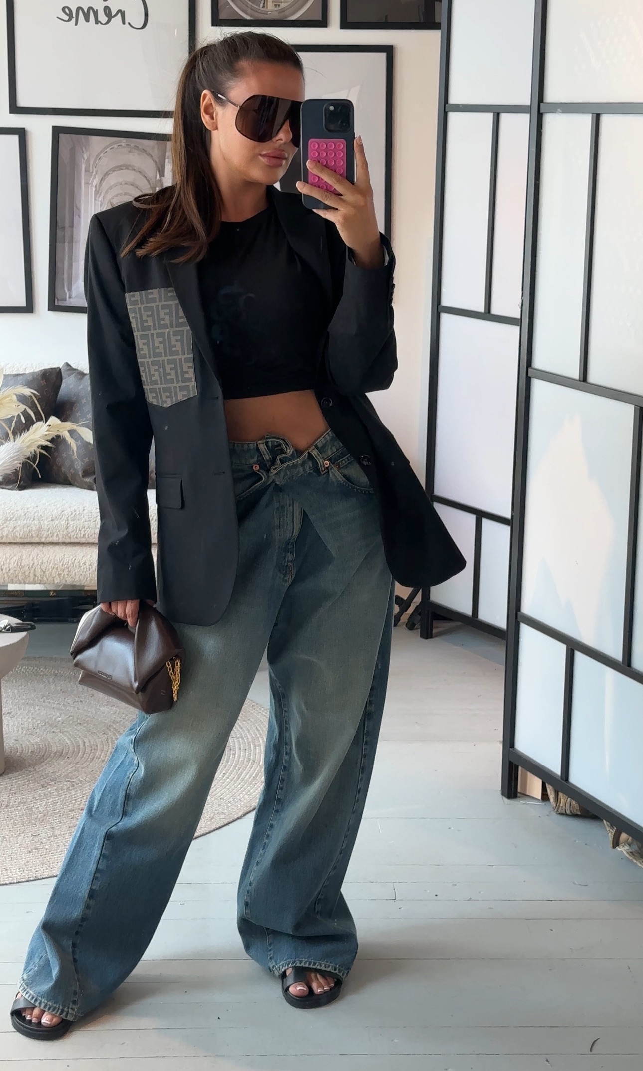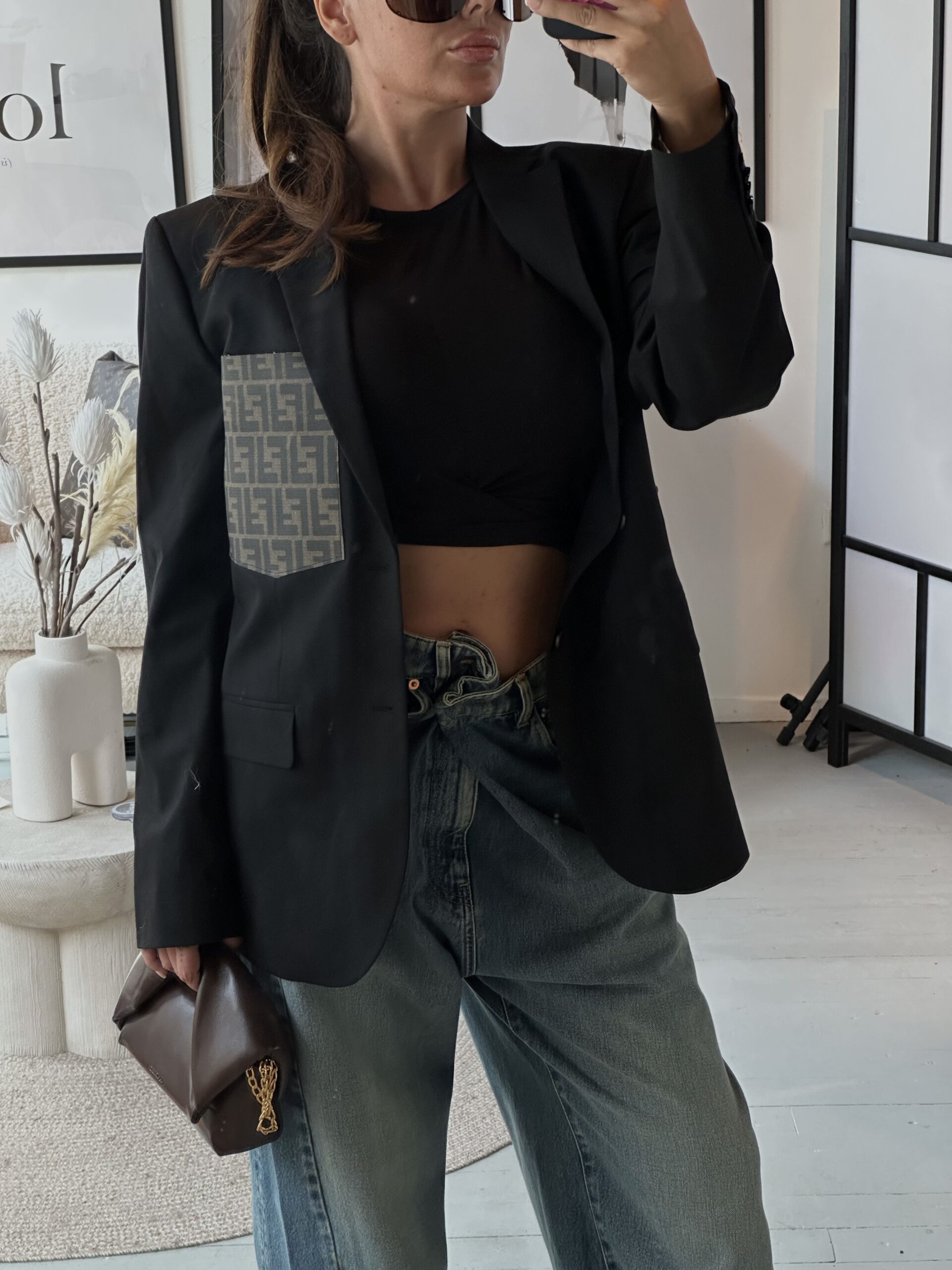 This item is not in stock — every blazer is handcrafted in our own atelier, made only once an order is placed. We are fully independent and not affiliated with any fashion house or designer brand. This piece was created from a  vintage travel bag, carefully transformed into a one-of-a-kind blazer with a signature pocket detail.