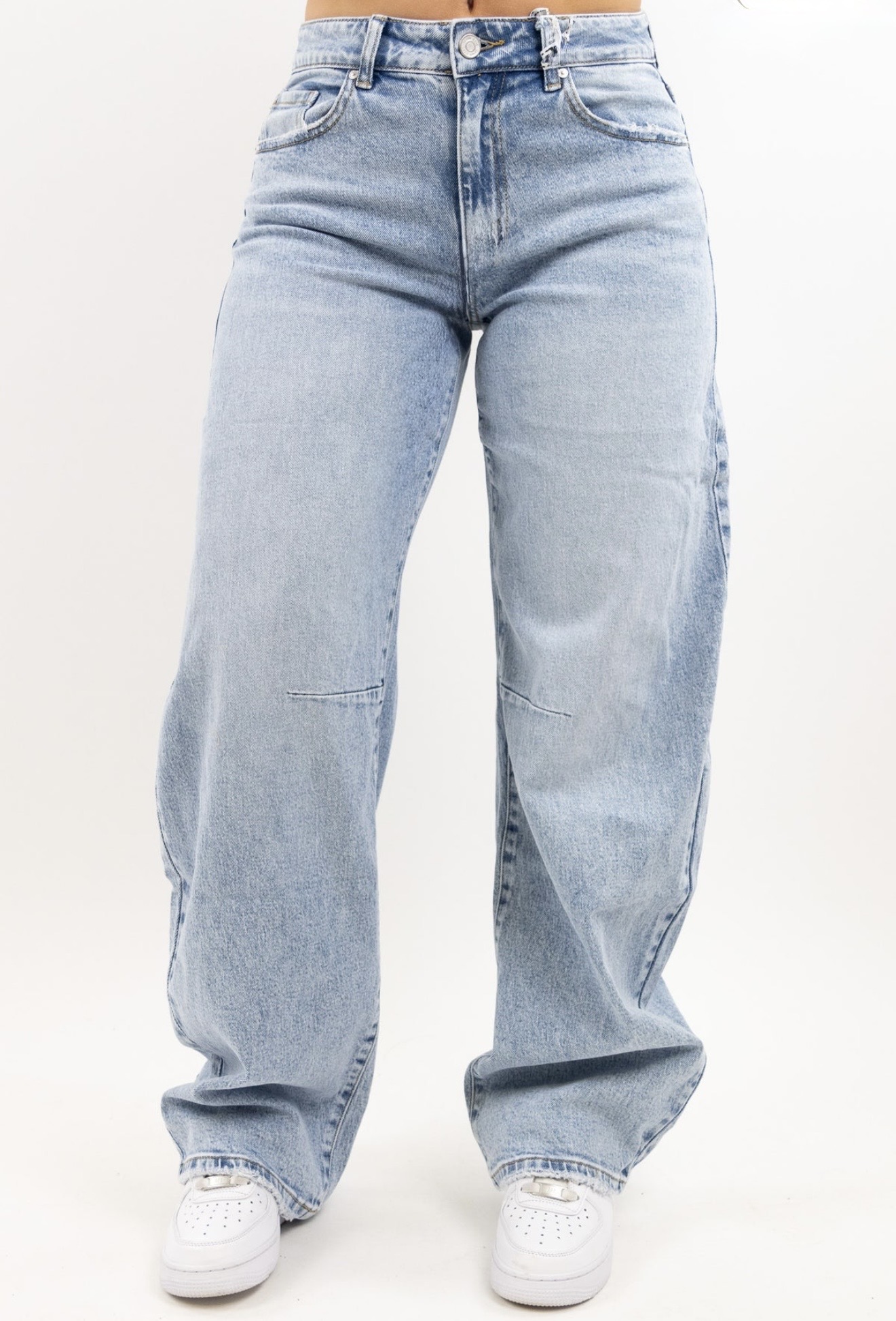 Mid-waist fit that naturally defines the waist, combined with wide balloon legs for a modern, statement silhouette. The denim contains a slight stretch, offering both structure and comfort while moving effortlessly with the body.