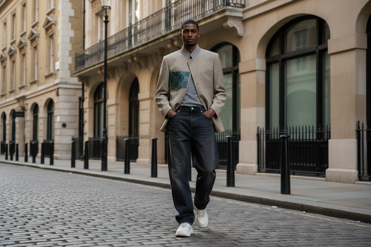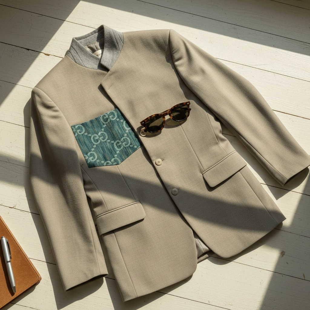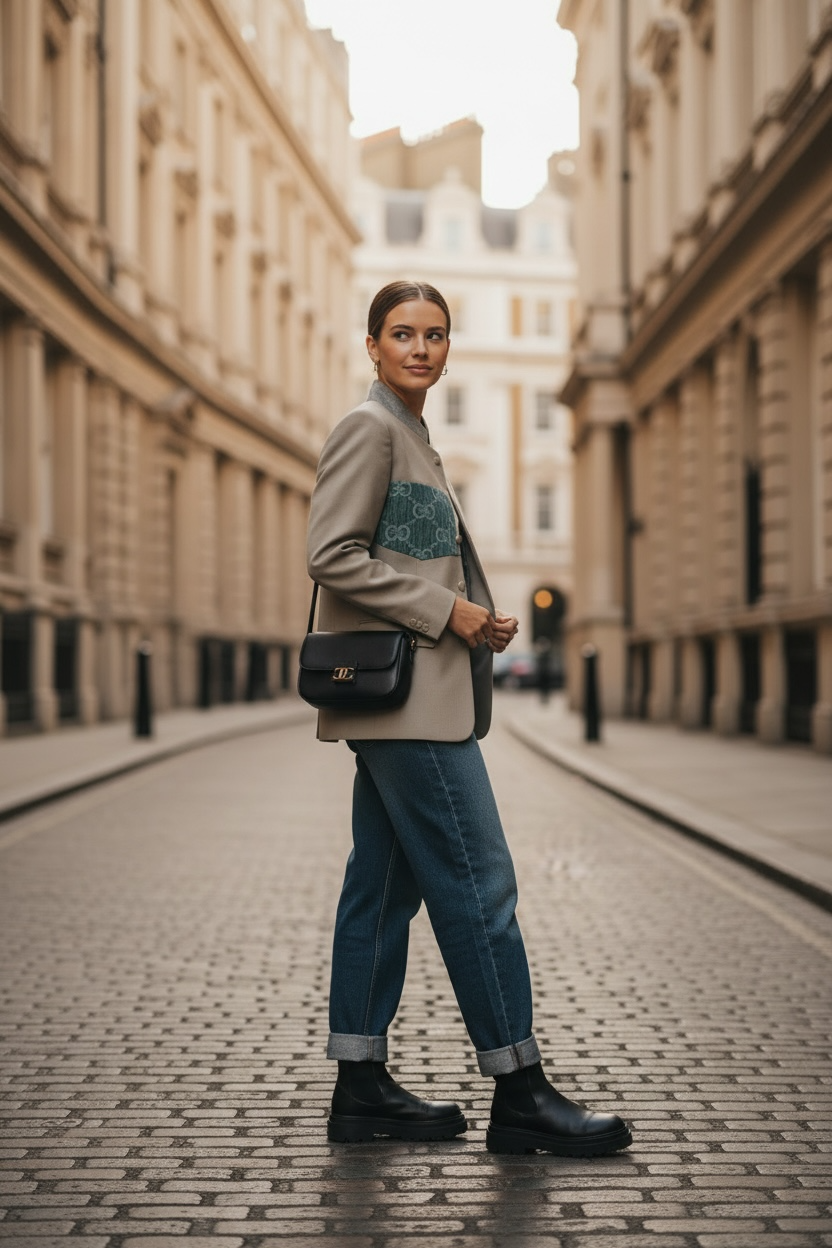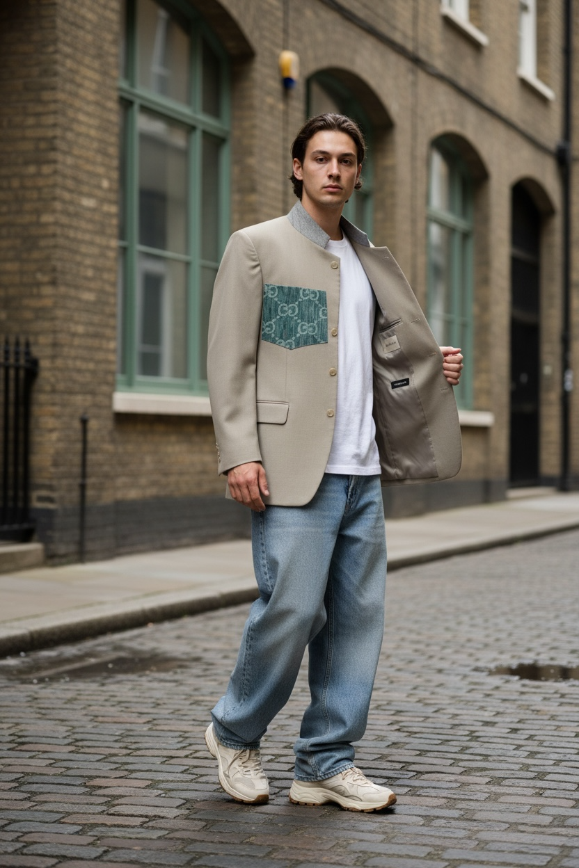 A refined unisex blazer handcrafted in our atelier from carefully selected vintage designer denim materials and produced entirely to order. Each piece is unique, combining heritage fabric with a modern tailored silhouette.